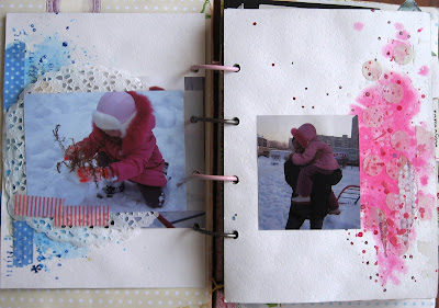 Ну вроде так это называется. Хотелось сделать что-то такое, чтоб не формально, много страничек разного размера, и что штучки всякие в разные стороны торчали. Альбом про Варю и дедушку (оказалось, что у них так много всяких ми-ми-мишечно - обнимашечных фото. Альбом делала все лето, в свободные минутки, а вот сфотографировать долго не могла:
